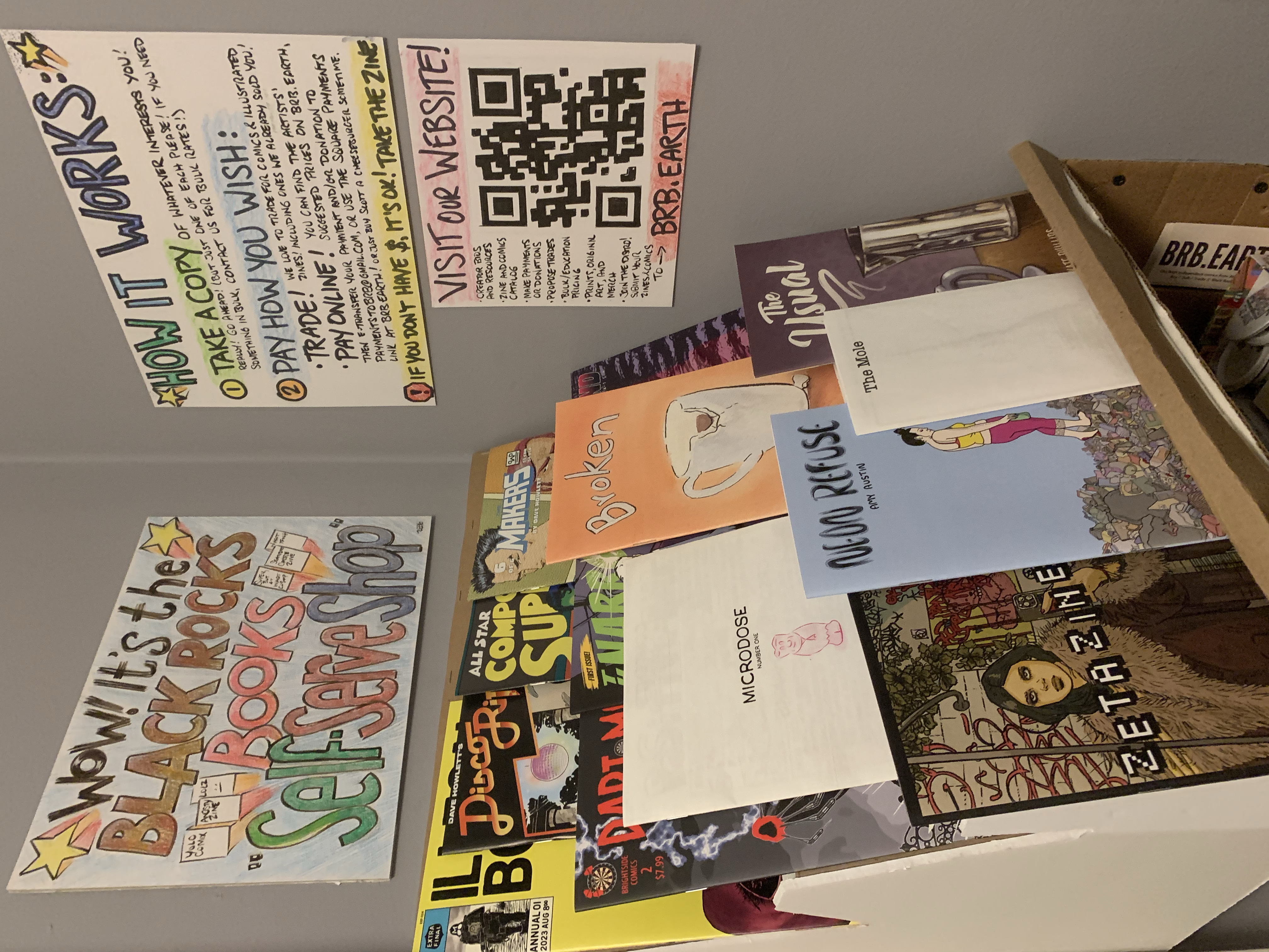 Black Rocks Books is a micropress and zine distro run by Scott Marshall. It exists to promote and celebrate comics and illustration created in Atlantic Canada (or by our expats and imports). If you have any issues or questions, please don't hesitate to contact me via email at paymentstobrb@gmail.com or ask in the BRB Discord. You can follow @blackrocksbooks on Bluesky. If you want to follow my art stuff as well you can follow @scottmarshall on BlueSky.
